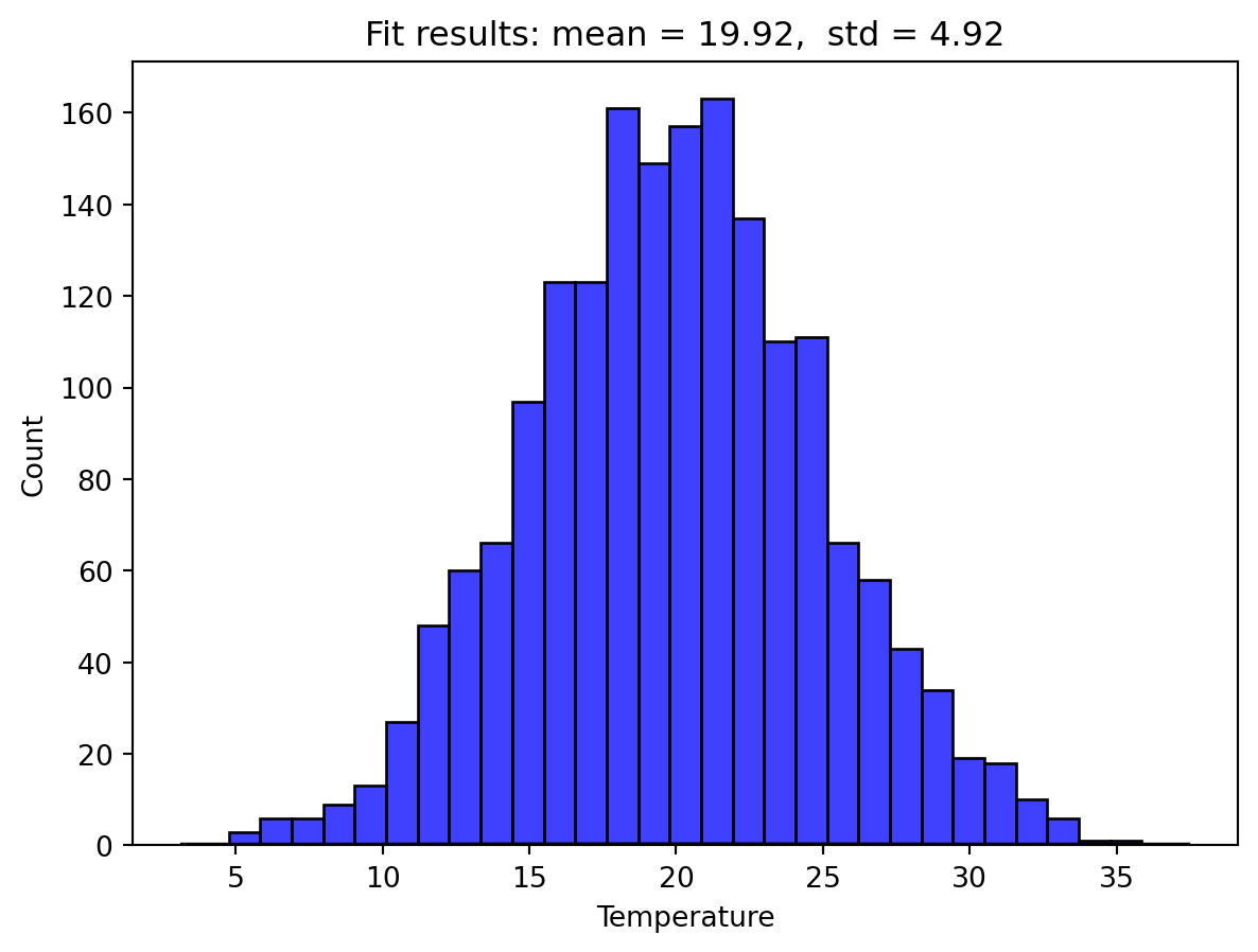print(f"Probability of Extreme Temperature (> {extreme_temp_threshold}°C): {probability_of_extreme_temp}")Probability of Extreme Temperature (> 30°C): 0.0226